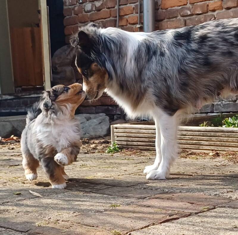 Op 12 februari 2025 is Zoef moeder geworden van 5 prachtige pups! Wat heeft ze het goed gedaan. De pups en trotse mama maken het allemaal goed.:4 jongetjes en 1 meisje en qua kleuren zijn ze blue merle en red tri. Wat een belevenis zeg, wat mooi om dit te mogen meemaken! Nu lekker rust, veel drinken en groeien maar :-)